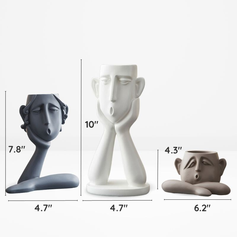 Carefully designed, this trio of face-shaped plant vases brings vitality to your living space, effortlessly complementing contemporary decor themes. They are essential elements for any stylish interior.